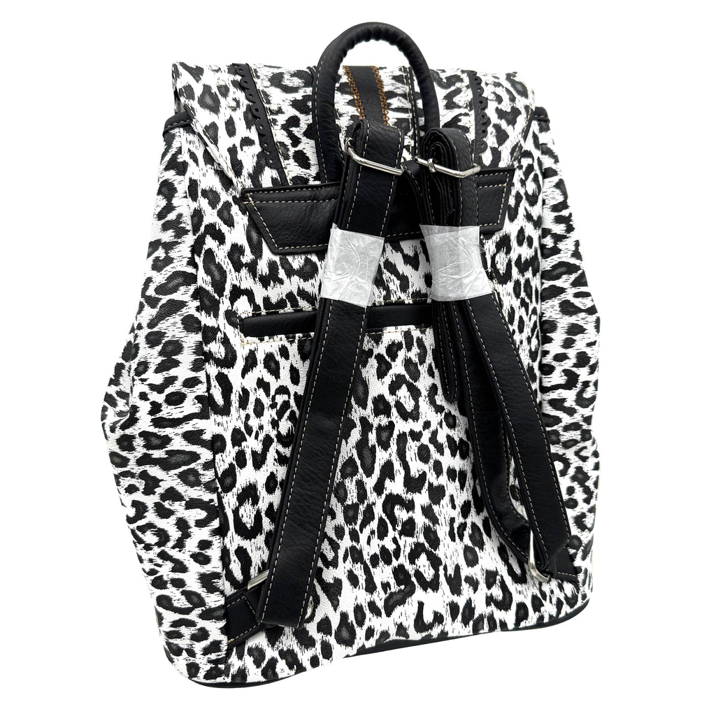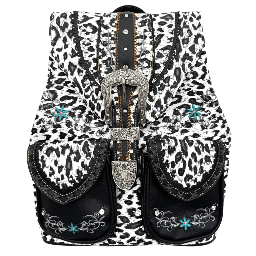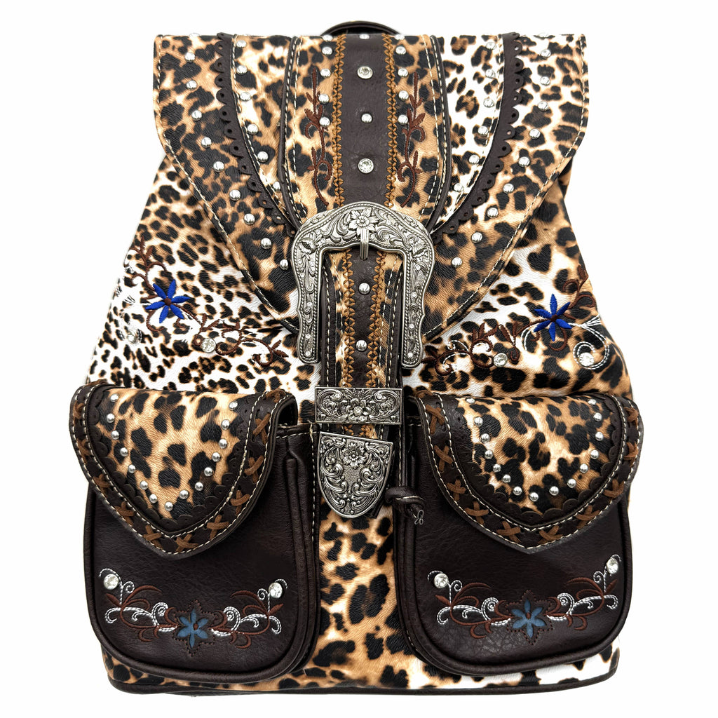 Elevate your style with this Leopard Print Western Leather Buckle Backpack, seamlessly blending bold patterns with refined craftsmanship. Crafted from PU Vegan leather, its distinctive leopard print adds a sophisticated edge, while the secure buckle closure ensures functionality. Perfect for those who appreciate fashion with practical elegance, this backpack offers ample space and durability for everyday use.