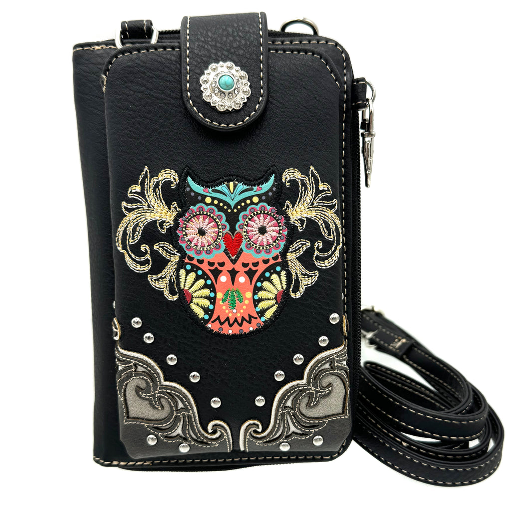 Native Colorful Owl Embroidery Crossbody Phone Wallet